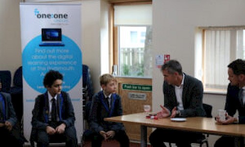 Mr Morgan and Mr Kyle visited the Academy to see first-hand the impact of technology on students’ education. During their visit, they witnessed the Academy’s one:one scheme and how advanced technology was enriching teaching across a range of subjects, including maths, geography and science.