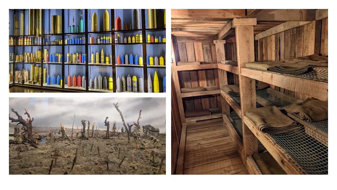 On the last day, we visited multiple restored trenches. They were very interesting and gave us an insight to what life in the trenches would have been like for the soldiers. The museums we went to on that day gave us more information to the equipment and supplies they had access to in the trenches. On that day, we also walked to a German graveyard in the morning, and it was interesting to see the difference on how they buried the enemy soldiers compared to the allies.