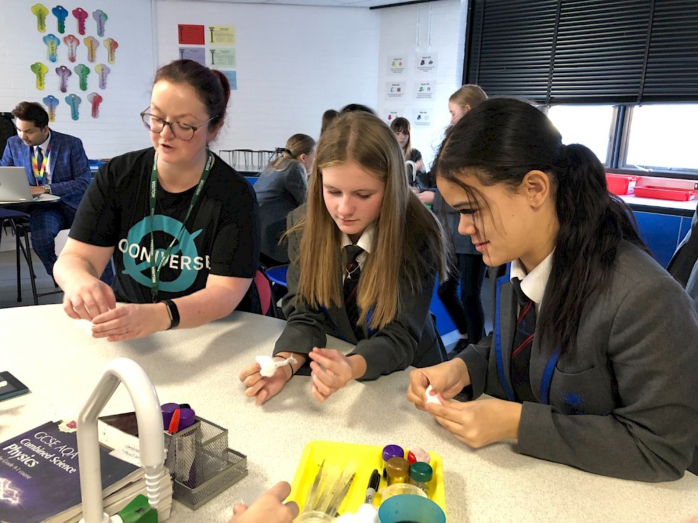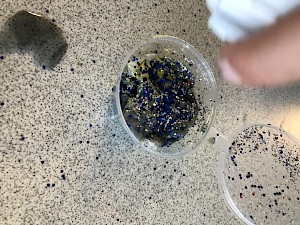 Students then got to work making their own miniature model, choosing between a spiral or elliptical galaxy. They created their models using a small plastic tub, cotton wool, a marble as the galactic centre, glitter as stars, and adding liquid colouring to the cotton wool with a pipette. Lots of glitter was required as galaxies have between 100-400 billion stars. Kathryn told students that if they were to try to just count a billion of those stars, it would take them 31 years of continuous counting!