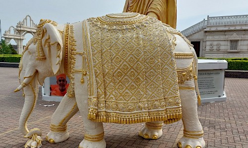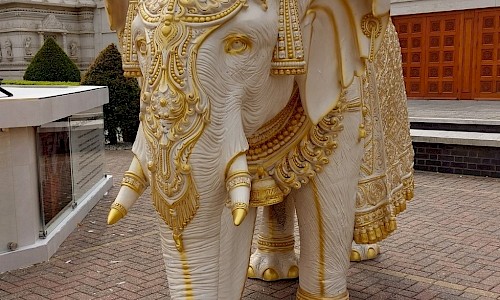 Upon arrival at Neasden Temple, students were asked to keep their mobile phones in their pockets, remove their shoes and remain silent before entering the spacious main prayer room. The spectacular main prayer room at the temple is made of white marble with a centrally located domed ceiling and multiple ornate carved columns. Students spent time taking in the beauty and tranquility of the prayer room and looking at the shrines of Hindu deities, such as Ganesh, located all around the periphery of the prayer room. They respectfully remained silent to allow worshippers to pray in peace and quiet and they all abided by the rule of no photography.
